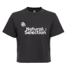 100% cotone ringspun. Top manica corta modello oversieze boxy, colletto in costina 1x1, nastro di rinforzo alle spalle. Taglio femminile, piu' corto, giromaniche.