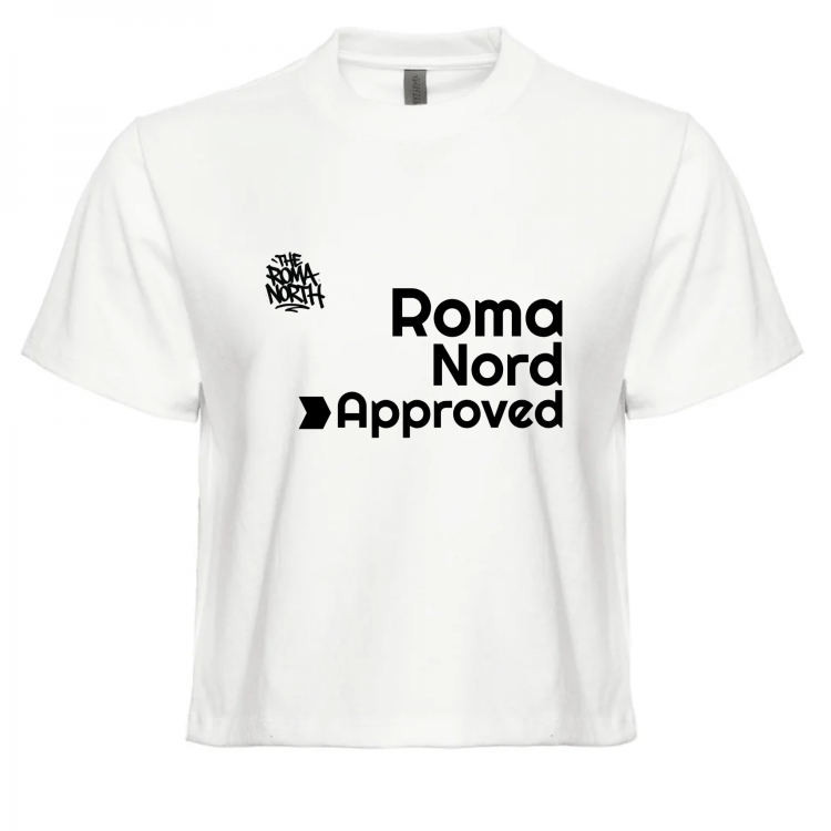 100% cotone ringspun. Top manica corta modello oversieze boxy, colletto in costina 1x1, nastro di rinforzo alle spalle. Taglio femminile, piu' corto, giromaniche.